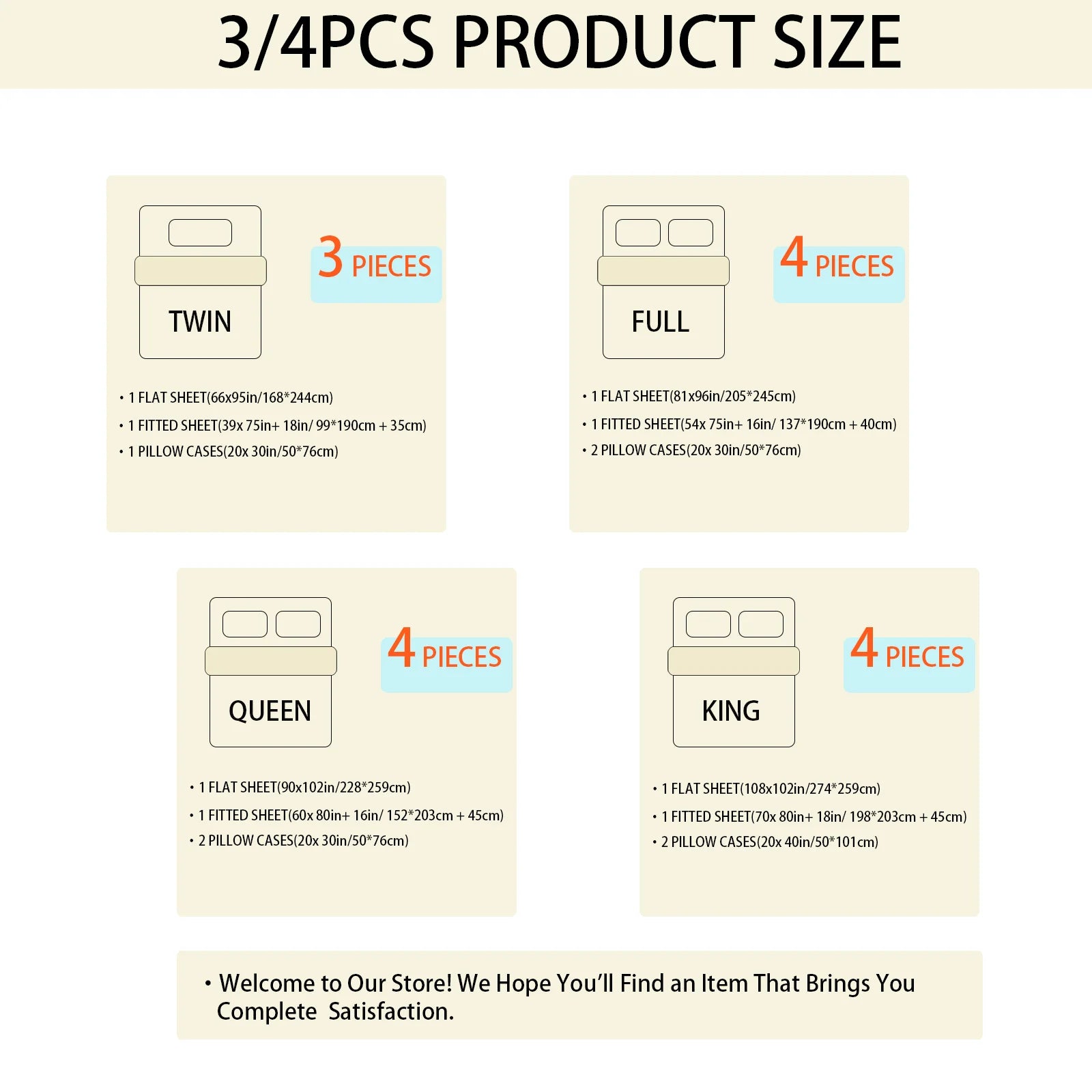 - 1 Flat Sheet: 90” x 102” (228 x 259 cm)